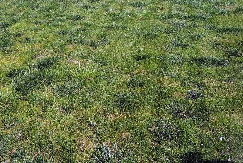 與草地早熟禾和多年生黑麥草相比,葦狀羊茅依然略顯粗糙和高大,混播時(shí)必須以葦狀羊茅為主。葦狀羊茅的比例夠大,才能在草坪中均勻分布,形成整齊美觀的景觀效果。如果葦狀羊茅的比例太少,一叢叢零星分布的葦狀羊茅就會(huì)變得更加粗大,草坪高低不平,不僅難看,也沒(méi)有使用價(jià)值(下圖)。